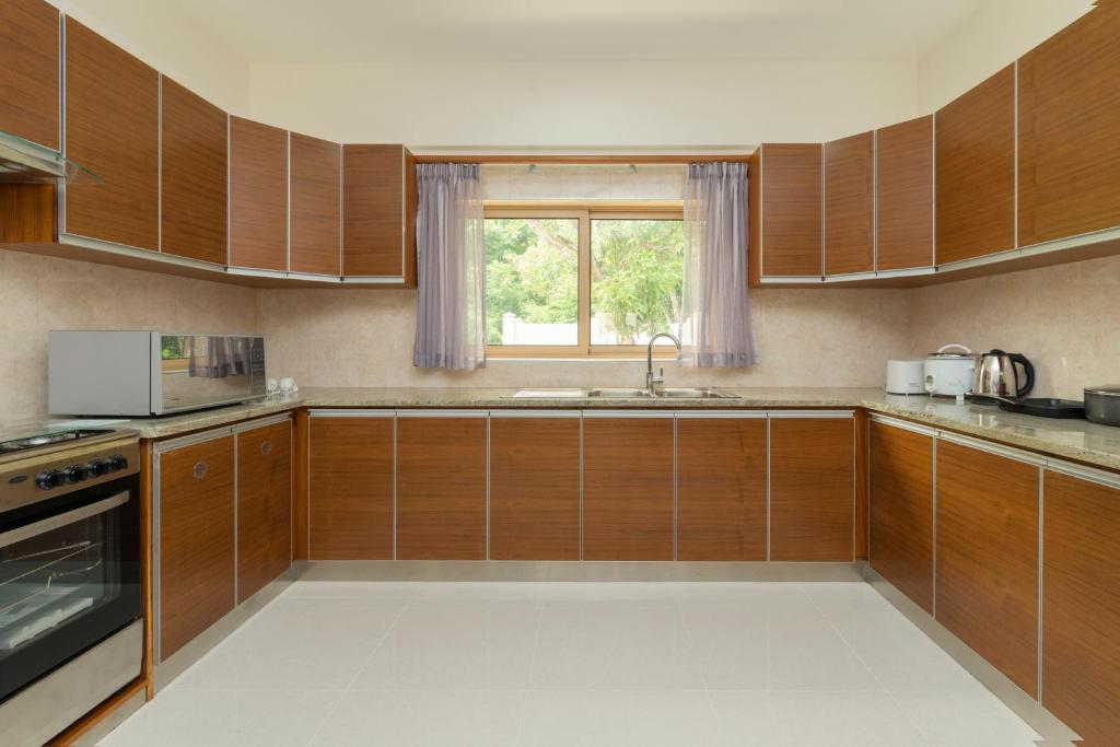 Guests can make meals in the kitchen that is equipped with a stovetop, a refrigerator, kitchenware and an oven. The